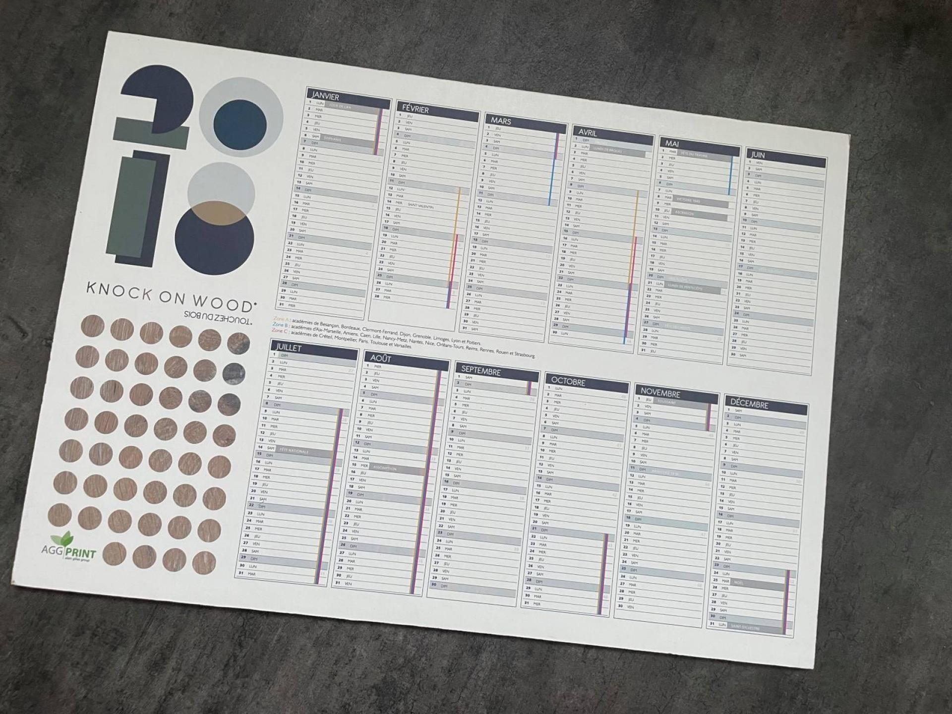 Support publicitaire classique et esthétique, le calendrier imprimé personnalisé ou l'agenda imprimé personnalisé vous permet de maintenir un lien toute l'année avec vos clients. Changez du traditionnel calendrier imprimé sur carton en optant pour des supports originaux. Voici quelques idées : adhésif repositionnable, plexi miroir, plastification Velléda effaçable, bois, matière écologique recyclée et recyclable...