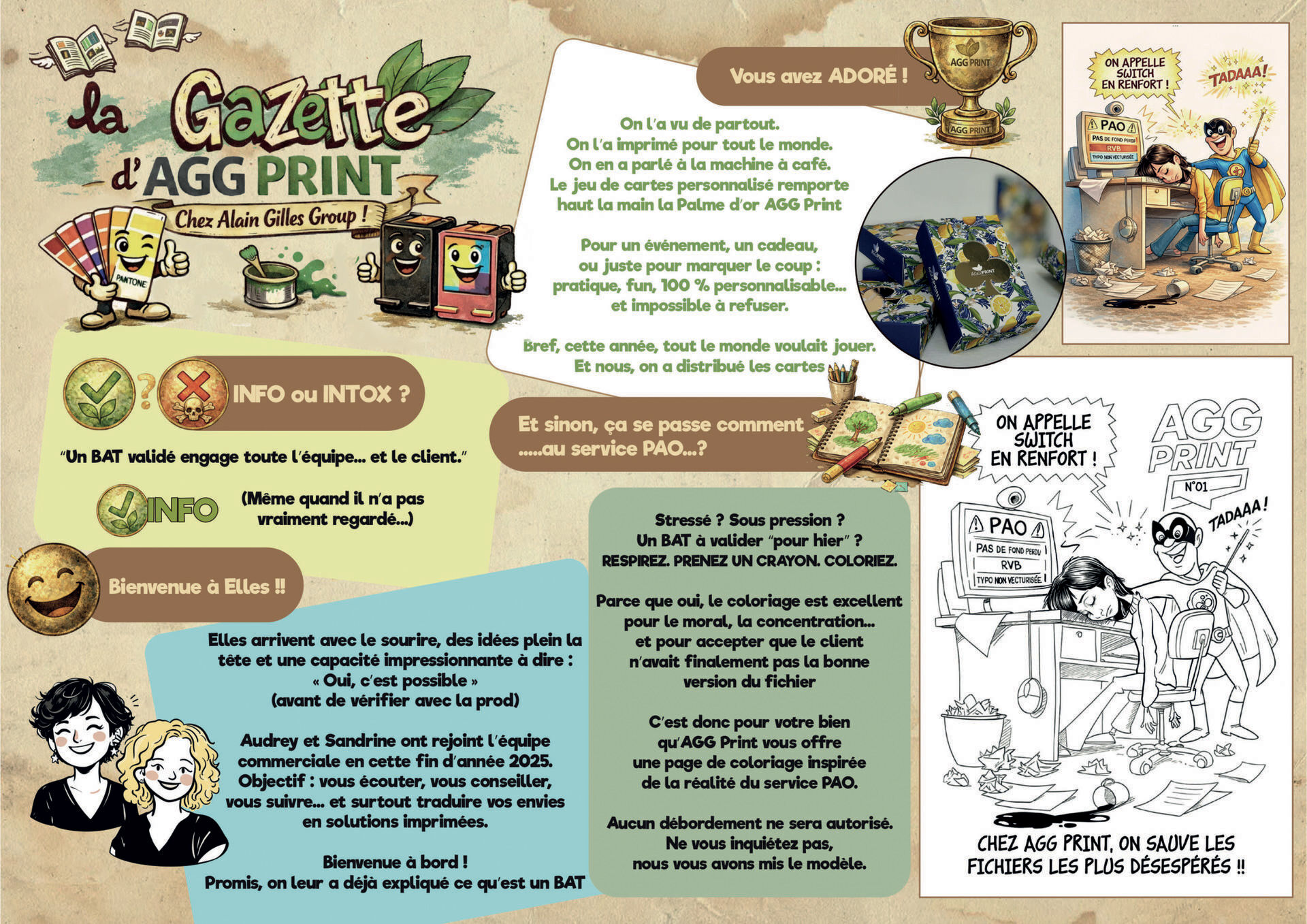 C’est de cette réalité qu’est née La Gazette d’AGG PRINT, un rendez-vous trimestriel pensé pour vous faire découvrir notre univers autrement, avec sérieux… mais surtout avec humour.